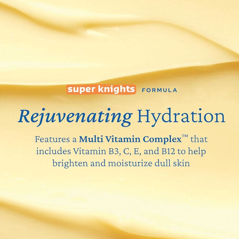 La crème de nuit éclaircissante & nourrissante Super Knights Multi Vitamin Sleeping Mask est idéale pour soigner et dorloter les peaux fatiguées et en manque de nutriments. Sa formule enrichie en vitamines et en niacinamides contribue à atténuer les rides d’expression et sa texture riche est particulièrement bénéfique aux peaux déshydratées.