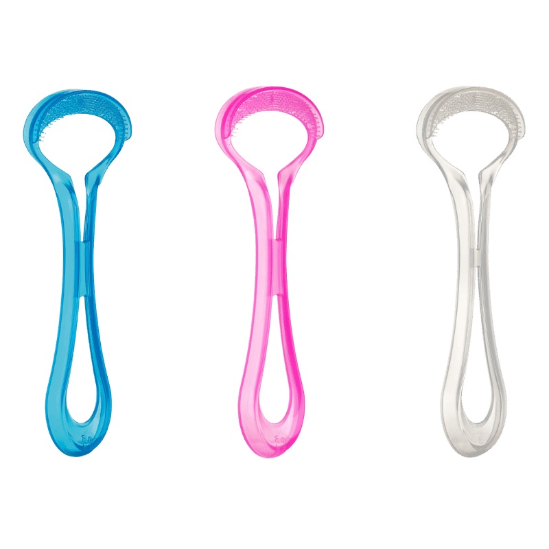 Für eine schonende und effektive Zungenreinigung in 10 Sekunden. Unser flexibler Zungenreiniger entfernt geruchsbildende Bakterien schnell und schonend. Hergestellt aus antibakteriellem, wiederverwendbarem Material mit abgerundeten Noppen, sorgt er für eine angenehme Reinigung – besonders am schwer erreichbaren Zungenrücken.