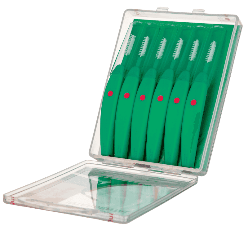 So einfach war Interdentalreinigung noch nie: Der ergonomische, flexible Griff liegt angenehm in der Hand und erreicht mühelos auch die hinteren Backenzähne. Der biegsame Hals schützt den Drahtkern und verlängert die Lebensdauer der Bürste. Der Bürstenkern ist mit einer Bakterienschutzummantelung versehen, die eine Kontamination verhindert.