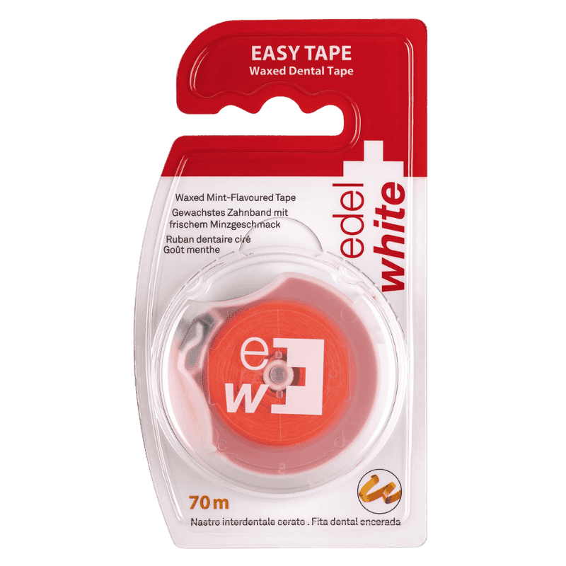 Durch die flache Form in Kombination mit der gewachsten Beschichtung gleitet das Easy Tape mühelos auch in die engsten Zahnzwischenräume und eignet sich besonders gut für Zahnseide-Einsteiger. Easy Tape ist breiter als eine durchschnittliche Zahnseide weshalb du weniger Zeit für die Reinigung deiner Zähne brauchst, da Easy Tape in der Lage ist, mehr von der Oberfläche eines Zahnes in einem Zug zu putzen. Die wachsbandähnliche Form bedeutet zudem, dass das Band rutschfest ist und nicht in die Finger schneidet.