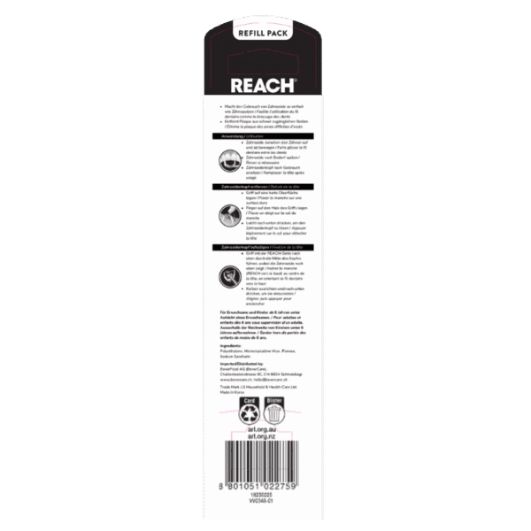 Nachfüllpackung mit 28 austauschbaren One-Touch-Zahnseidenköpfen für das REACH Access Flosser Starter Pack: einfach nachzufüllen, hygienisch und wirtschaftlich.
